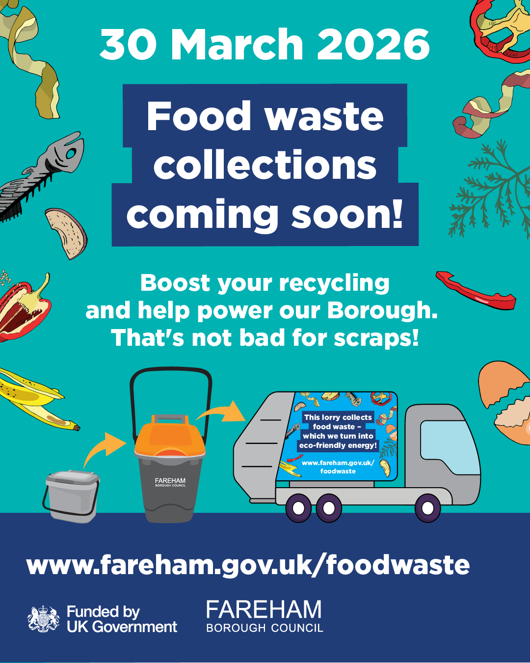 To find out more about the service or what you can put into your food waste bin, go to www.fareham.gov.uk/foodwaste.